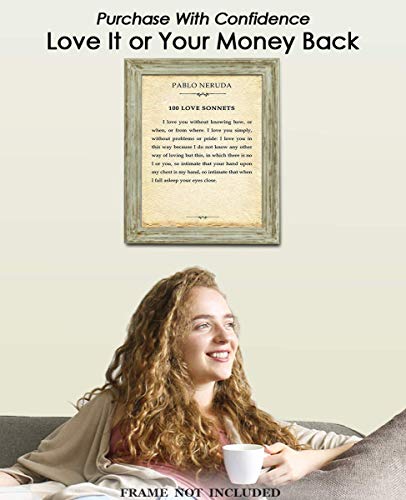 "I Love You Without Knowing How…" Pablo Neruda, 100 Love Sonnets: Positive Quotes; Inspirational, Motivational Wall Art Decor Poster for Office, Classroom, Livingroom, Bedroom | Unframed Posters 11x14